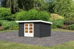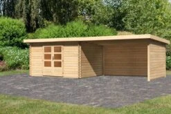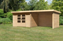 KARIBU Gartenhaus Askola 6, Terragrau, Fichtenholz 19mm, 558 X 306 X 216 Cm, Flachdach, Anbau 2,4m