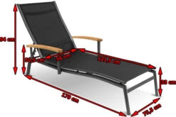 HARTMAN Alice Sonnenliege, Xerix/schwarz, Alu/Textilen, 179 X 75,5 X 33 Cm, FSC Teak-Armlehnen