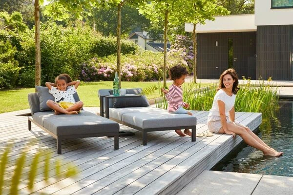 HARTMAN Adam Gartenliege, Flanelle, Alu/Sunbrella, 195x70x30cm, Rückenlehne Verstellbar, Inkl. Kopfkissen