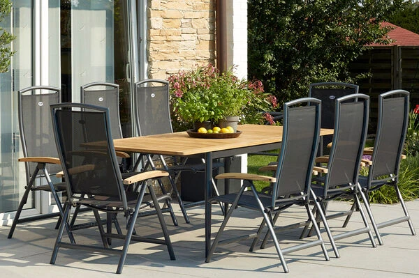 8x Multipositionssessel Raffaelo in xerix/anthrazit, Armlehnen aus FSC®-Teakholz