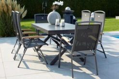 Hartman Esstischgarnitur mit Xanadu Ausziehtisch aus Alu, 2 Stapelsessel und 4 Multipositionssessel der Serie „Raffaelo“
