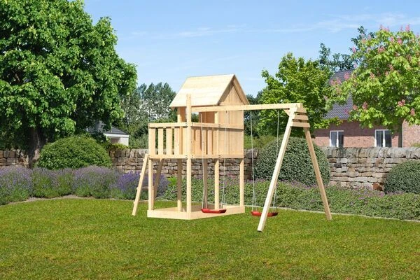 KARIBU Frieda Stelzenhaus, nordische Fichte, wahlweise mit Schaukel und Gerüst