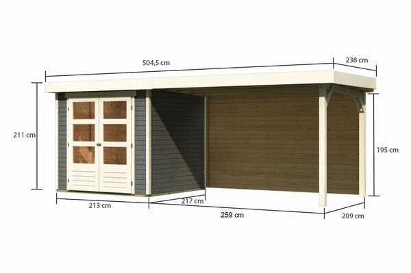 1x KARIBU Gartenhaus Askola 2 , terragrau , ca. 504,5 x 217 x 211 cm