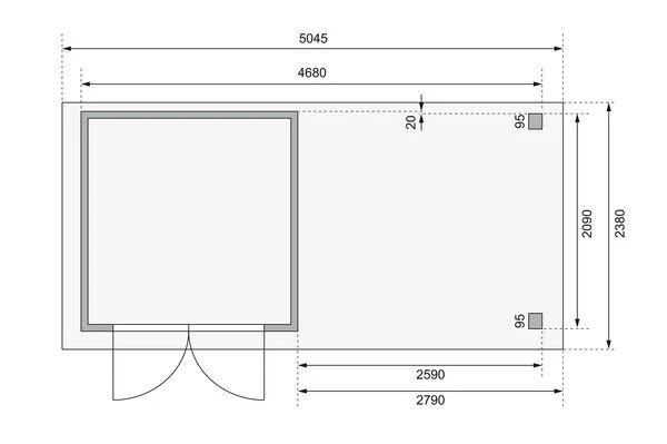 - Artikelbezeichnung: Askola 2 im Set mit Anbaudach 2,80 m Breite und 19 mm Rückwand