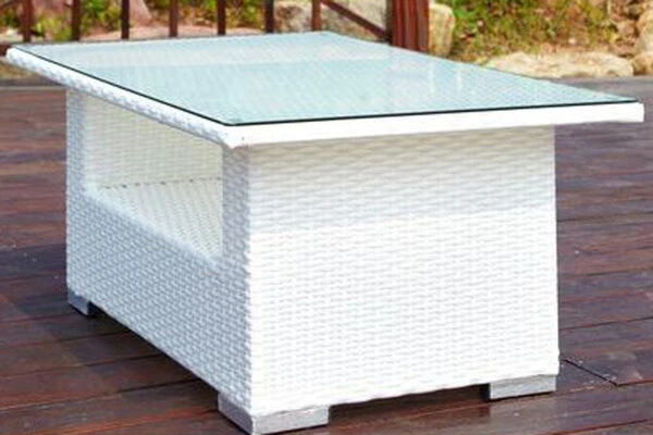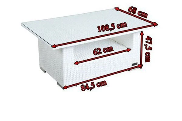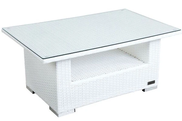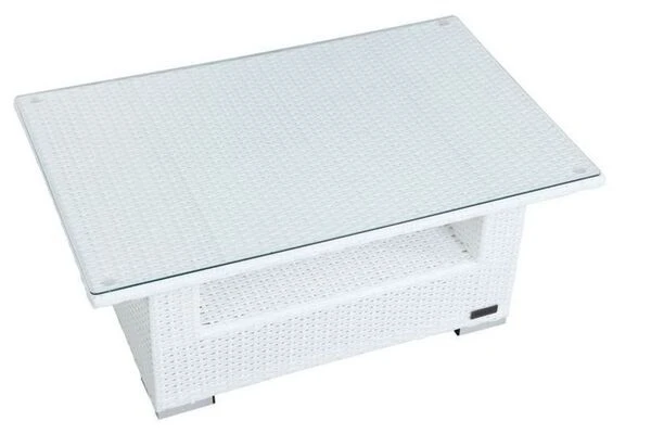 OUTFLEXX Kaffeetisch, Weiß, Polyrattan, 108,5x68cm, Inkl. Glasplatte