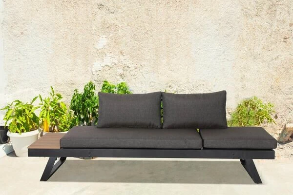 OUTFLEXX Lounge/Liege, Dunkelgrau, Alu/Holzimitat/Textilene, 228x78x66 Cm, Verstellbar, Inkl. Seitenablage