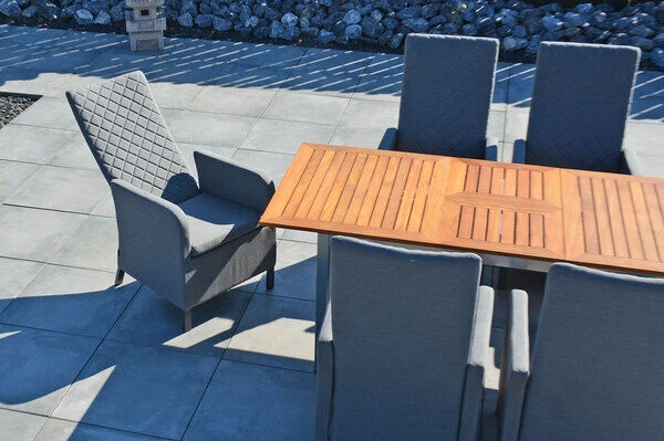 Sie verbringen gerne gemütliche Grillabende mit Ihren Liebsten und sind auf der Suche nach einer bequemen und zugleich pflegeleichten Esstischgarnitur? Dann sollten Sie sich diese Esstischgruppe bestehend aus einem praktischen Ausziehtisch und 6 extravaganten Sunbrella Sesseln von OUTFLEXX® genauer ansehen.