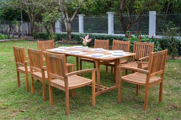 OUTFLEXX® Esstischgarnitur aus FSC®-zertifiziertem Akazienholz für acht Personen