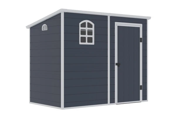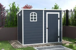 Der Türdurchgang des Gerätehauses hat eine Gesamtbreite von ca. 73,5 cm und eine Höhe von ca. 173 cm. Die Grundfläche des Gartenhauses beträgt ca. 6 m² und hat insgesamt 2 Lüftungsgitter und ein Fenster, was die Luftzirkulation im Gerätehaus ermöglicht. Die Wände und das Dach des Hauses tragen die Farbe anthrazit. Durch die gedeckte Farbe fügt sich das Gerätehaus dezent in seine Umgebung ein.