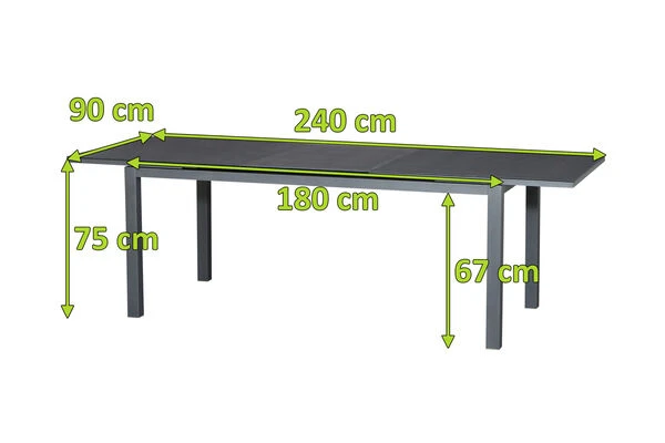 SIENA GARDEN Esstisch Miros, Graphit/anthrazit, Alu/Spraystone, Ca. 180/240×90 Cm