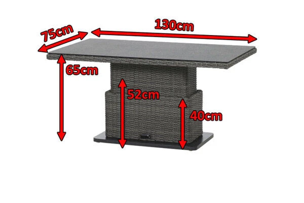 SIENA GARDEN Porto Lifttisch, Grau, Alu / Gardino®-Geflecht, 130 X 75 X 40/52/65 Cm, Höhenverstellbar, Spraystone Platte