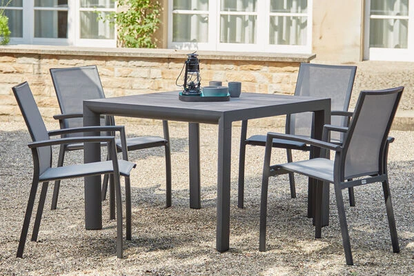 1x SIENA GARDEN Silva Esstisch, matt anthrazit/washed grey, Alu/Keramik, 100×100 cm, für bis zu 4 Personen