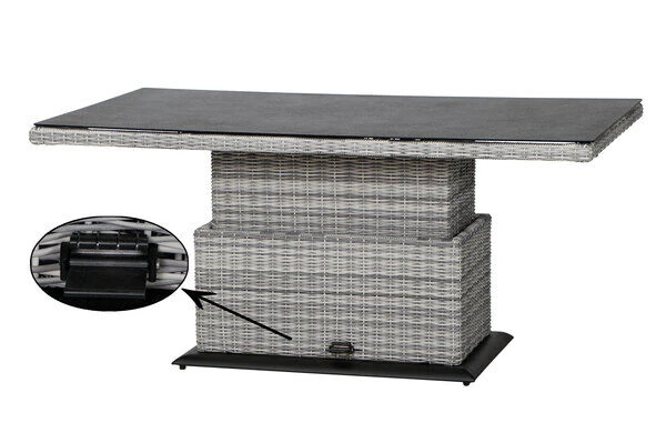 SIENA GARDEN Soria Lifttisch, Ice Grey, Alu / Gardino®-Geflecht / Spraystone, 160x90x47-71 Cm, Stufenlos Verstellbar