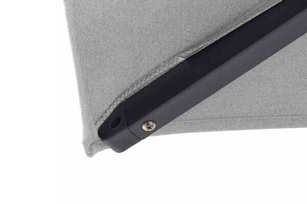 Mit dem Ampelschirm aus der Stratos Serie von Siena Garden können Sie dank der Maße von ca. 300 x 400 cm eine große Fläche abdecken – perfekt für gemütliche Tage im Freien mit der ganzen Familie. Das Schirmtuch passt sich auch optisch perfekt an Ihre Terrasse an. Dank der Gesamthöhe von ca. 295 cm kann man unter dem Schirm auch bequem stehen, zum Beispiel am Stehtisch bei der nächsten Gartenparty. Der ca. 78 x 78 mm dicke, ovale Schirmstock wird aus hochwertigem Aluminium produziert, welches einem Pulverbeschichtungsverfahren unterzogen wurde, und so äußerst robust ist. Besonders praktisch: Durch das verwendete Aluminium wiegt der Schirm nur ca. 33 kg und lässt sich trotz seiner Größe noch einfach hin und her transportieren. Die 8 Schirmstreben sind ebenfalls aus Aluminium gefertigt und sorgen für die nötige Stabilität.