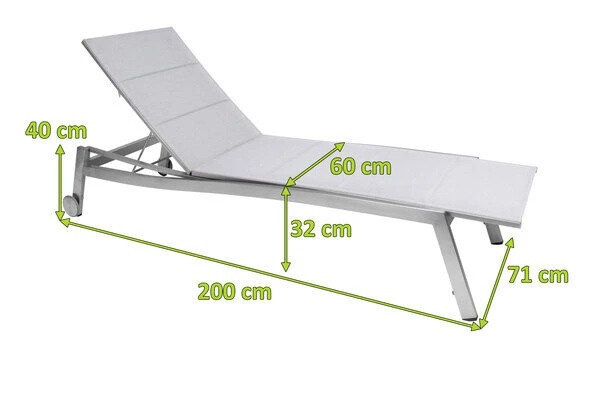 STERN Allround Rollenliege, Silber, Edelstahl/Textil, 200x71x40 Cm, Gepolstert, Verstellbare Rückenlehne