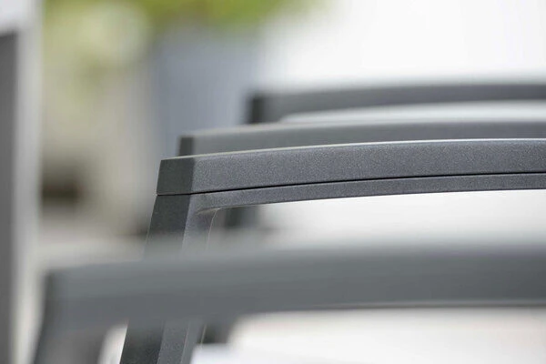 Die stylischen Stapelsessel von STERN sind edel, schick und vor allem bequem. Die Gesamtmaße liegen jeweils bei ca. 65 x 57 x 89 cm. Dank der hohen Qualität und erstklassigen Verarbeitung sitzen Sie auf der Sitzfläche von ca. 45 x 42 cm stets bequem. Für das solide, anthrazitfarbene Gestell kommt korrosionsbeständiges Aluminium zum Einsatz. Bespannt werden die Gestelle mit Textilene im edlen Silber. Das Material ist unglaublich hautsympathisch und sorgt für ein herrliches Sitzgefühl, das Sie auch in der Sommerhitze nicht im Stich lässt. Armlehnen schenken den Sesseln erhöhten Komfort. Sie können die ca. 3,5 kg leichten Federgewichte auch ganz nach Bedarf an Ihren Lieblingsplätzen aufstellen. Mit Hilfe der Stapelfunktion lassen sich die Sessel bei Bedarf auch schnell platzsparend verstauen.