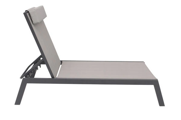 VILLANA 2er-Set Sonnenliegen, Anthrazit/grau, Alu/Textil, 198x66x32cm, Mit Beistelltisch 45x45cm