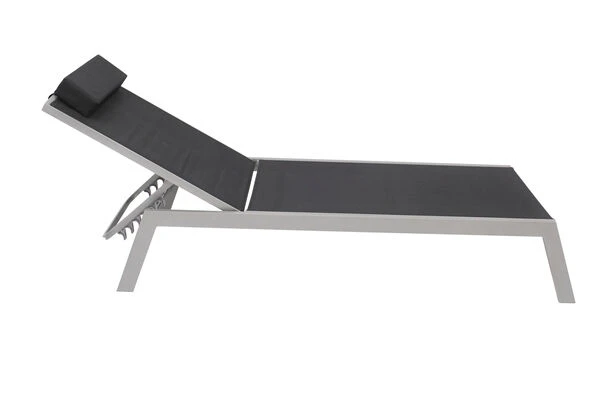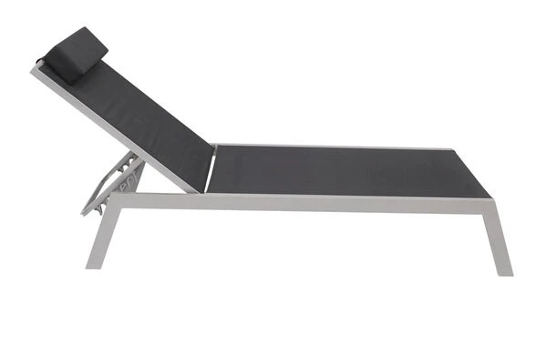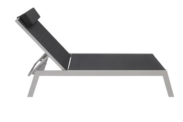 Exklusives Gartenliegenset von Villana in Silber / Schwarz mit praktischem Beistelltisch
